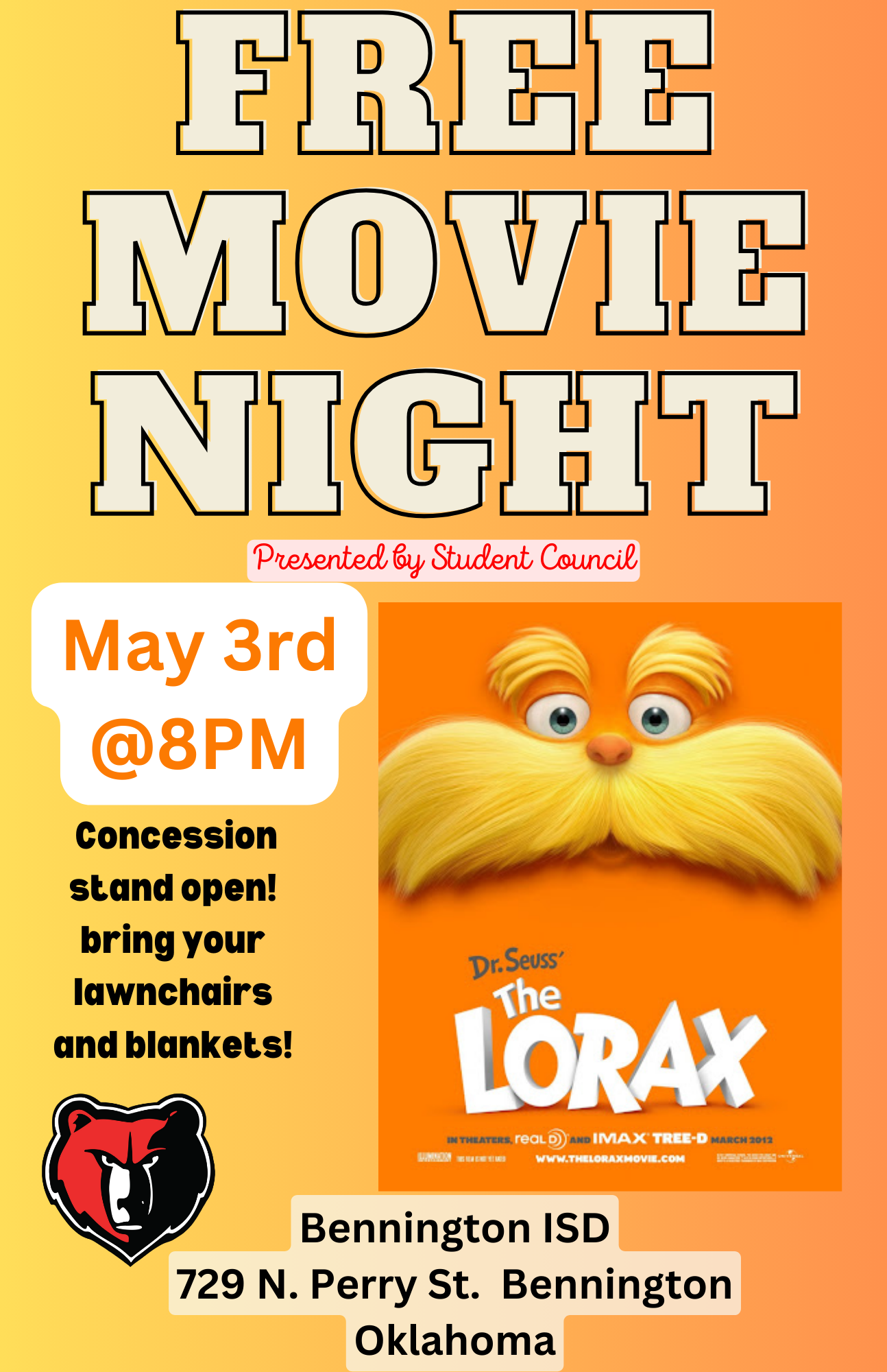 Join us on Β May 3rd at 8:00 PM for a special outdoor movie screening of The Lorax!