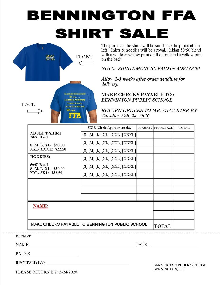 Bennington FFA Shirt Sale